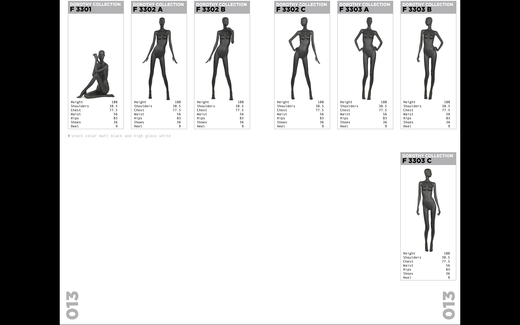 | DOROTHY - Ref.: 013 La nueva versi贸n de nuestra colecci贸n Little Beads. Totalmente diferente, especialmente en comparaci贸n con la gran variedad en las colecciones de Hans Boodt. Dorothy es femenina y encantadora.Estos maniqu铆es requieren un tipo diferente de decoraci贸n, la moda de gama alta o telas suaves y lujosas.Dorothy se presentan con un aspecto absolutamente diferente. Standar en blanco brillante y mate plata negro, base de cristal e incluye kit de retoque.Puede consultar las diferentes opciones en (VER ARCHIVO ADJUNTO) o en el siguiente enlace: HANS BOODT MANNEQUINS ___________________________________________________________________________________________________________________ Medidas: Consultar foto n潞4/ Height-Altura/Shoulder-Hombros/ Shoe-Pie/ Chest-Pecho/ Waist-Cintura/ |